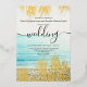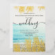 Modern tropical simple real gold foil palm tree watercolor with simple typography, a trendy and tropical wedding theme on palm tree leaf.