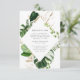 Stylish, elegant wedding enclosure cards featuring your wedding reception details surrounded by a geometric frame of watercolor monstera leaves and faux gold foil and green foliage. Personalise the card by adding important information such as reception location, times, etc.