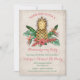 Tropical Golden Pineapple Housewarming Invitation with a FAUX gold glitter pineapple, hibiscus flowers, bird or paradise and palm fronds on a anitque linen background.