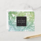 Coordinates with the Tropical Green/Aqua Glitter Palms Business Card Template by 1201AM. Glittery silhouettes of palm trees create a tropical backdrop on this modern and sophisticated postcard template. Your name or business name is styled in a simple black box for a clean, minimal aesthetic that contrasts well with the faux glitter background. Designed by 1201AM © 1201AM CREATIVE