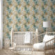 Tropical Green Aqua Gold Leaves Wallpaper