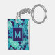 Tropical Green Blue Leaves Pattern Monogram Key Ring