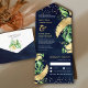 Tropical Green Gold Monstera Palm Navy Wedding All In One Invitation