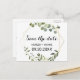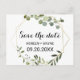 This tropical green leaves save the date card is perfect for a destination wedding. The design features hand-painted beautiful green leaves, adorning a gold geometric frame.