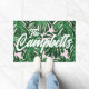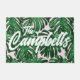 Tropical Green Leaves Script Pink Name Doormat