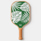 This Tropical Green Monogram Pickleball Paddle features a white tropical leaf pattern over a dark green background. Personalise it with a modern, simple font for your initial.