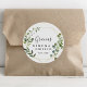 This tropical green Spanish thank you wedding favour classic round sticker is perfect for a modern wedding. The design features hand-painted beautiful green leaves, adorning a gold geometric frame.