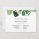 Wedding Rehearsal Dinner invitation featuring tropical leaves and banana leaves with a watercolor green backside.
