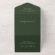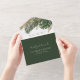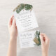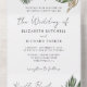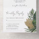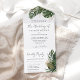 Simplify your wedding stationery with this elegant all-in-one invitation, showcasing lush tropical botanicals. Vibrant green leaves and shimmering gold outlines gracefully adorn both the top and bottom sections of the crisp white design, offering a modern and cohesive presentation. This captivating artwork promises an exotic yet convenient way to invite your guests to your special celebration.