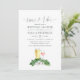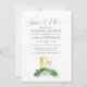 Trendy sage green and white watercolor tropical leaves and white magnolias bouquets engagement party/couple's shower/wedding rehearsal invitations designed to be quickly and easily customisable to your event specifics.