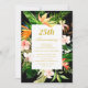 25th wedding anniversary invite with script lettering, tropical greenery and pink flowers. The text and colours can be edited.