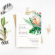 Tropical Greenery Flowers Modern Minimal Wedding Invitation
