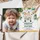 Safari themed birthday photo invitation featuring tropical green and gold watercolor greenery and a group of cute jungle animals