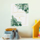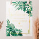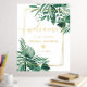 Tropical greenery palm watercolor bridal shower welcome sign, with faux gold geometric frame border.