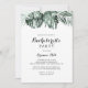 This tropical greenery white floral bachelorette party invitation is perfect for a rustic event. The design features green palm leaves bouquets with white lovely flowers.