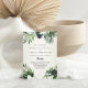 This tropical greenery white floral Spanish wedding invitation is perfect for a destination wedding. The design features green palm leaves bouquets with white lovely flowers.