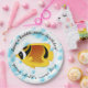 If you have a soft spot for animals (and maybe even consider yourself an "aficionado"), then these whimsical plates, which feature strikingly coloured, exotic tropical halfmoon / racoon butterflyfish in bubbly water, is the bubbletastic way to celebrate your child's first birthdays! Customise with your little swimmer's name, birthdate, or special messages.