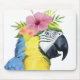 "Tropical Halo II" by Grace Popp. Features a Macaw bird wearing a hibiscus flower.