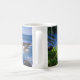This ceramic coffee mug is shown with a photo print of a beautiful ocean scene in Hawaii.