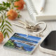 Keychain is shown with a photo print of a beautiful ocean scene in Hawaii.