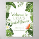 Create your own tropical botanical bridal shower sign with this personalised welcome summer theme poster or event hall display- Personalised in elegant, green lettering. Bordered with botanical, tropical palm leaves and bird of paradise and ivory plumeria (frangipani) flowers. Use the Customise It button to change anything - font styles, sizes, colours, or placement. We have coordinating, tropical floral wedding supplies and decor in our Zazzle.com/angela65* shop. Perfect for summer weddings, Hawaii destination wedding, botanical themes, and tropical floral themes Ready to be personalised with your Hawaiian bridal shower details. Easily customisable for any tropical special occasion or summer function- anniversary party, baby showers, etc.
