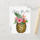 Tropical Hawaiian Floral Pineapple Change the Date Postcard