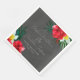 This custom party napkin features a tropical beach or island wedding theme. The background is a simple and elegant grey with colourful, tropical Hawaiian flowers. Floral bouquets with palm leaves, hibiscus, and frangipani flowers accent the borders.