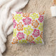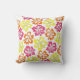 Pillow features an original marker illustration of a tropical hibiscus flower in pink, orange, and yellow.