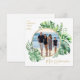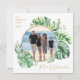 Wish your friends and family a mele kalikimaka this year, with these tropical photo christmas cards. Featuring a modern tropical greenery leaf frame, a gold circle, a family photo, personalised with your family name and the year.