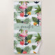 Introducing the most stylish and unique beach towel around! The Tropical Hawaiian Pink Flamingoes Palm Tree Leaves Beach Towel is perfect for adding a touch of tropical beauty to your summer days. This beautiful towel features a tropical background with personalised name, flamingos, palm trees, and leaves in a vintage retro chic boho bohemian style. The perfect addition to any summertime wardrobe!