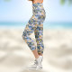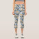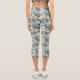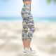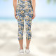 Tropical Hawaiin Yellow Hibiscus Flowers on Blue Capri Leggings
