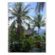 Notebook - front cover design is featuring palm trees with a little house in the tropical setup.