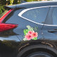 Vinyl sticker with large pink hibiscus flowers with an assortment of tropical foliage