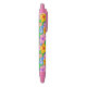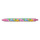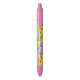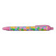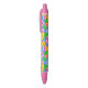 Colourful ballpoint pen covered in scattered tropical hibiscus flowers in pink, orange, and yellow.