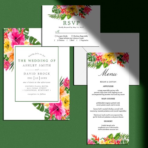 Tropical Hibiscus Floral Palm Leaves Wedding RSVP