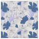 Tropical hibiscus flower patterned fabric in shades of blue on white