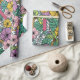 Tropical hibiscus flower with palm, parrots and ex wrapping paper