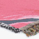 A quality printed throw has its advantages. This is a much finer weave throw than its loopier cousins, and though lighter, it is worth the investment for custom room accessorizing. The back is much prettier than the typical brown, and the fringe on the long sides very vivid, the selvage nicely done. Before photographing, I washed the throw in cold water, delicate, with a thicker woven throw the same size. On tumble dry low, this throw was dry in half the time as the other. This is a very practical quality if you use throws for furniture covers or to wrap up in frequently. The sleekness of the fabric makes it a great layer for accenting or protecting without the feeling of sitting on too much stuff. Perfect for napping or when you feel a light chill coming on. The color printing is beautiful and on this fabric, matched the design and color of my Photoshop image. This is an advantage for blending room fabrics and colors. The fringe on the short sides prints the colors from the design image and therefore varies from the side fringe. I streaked a white fractal line through the plaid pattern to give the illusion of weaving. This printed as crisp as an illusory thread, and put some white in the short side fringe, showing another advantage of print vs loomed- for artistic purposes, line lines, detail, and color integrity can be planned and preserved. My loomed throws have color limitations and more of a needlepoint texture. Print throws reproduce an exact image. The throw felt a little stiff straight out of the package, but this went away in the first delicate wash. Of course I searched the wash water for ink or bleeding and there was none.