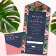 Tropical Hibiscus Modern Wedding Navy Blue All In One Invitation