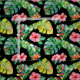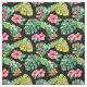 Tropical Hibiscus Palm Leaves Black Pattern Fabric