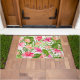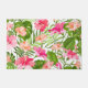 Beautiful green & pink tropical leaves & flowers, seamless repeat pattern