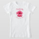 Pink hibiscus flower girl's t-shirt with custom text. Add her name and title with date, or any text you want. Bright pink script font curves around the tropical hibiscus in the centre of a white, short sleeved shirt - or choose any style.