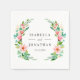 Designed to match our Tropical Hibiscus wedding collection, these tropical botanical chic napkins feature your names and date encircled by a wreath of watercolor summer leavesa and tropical flowers in soft shades of green and pink.