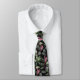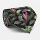 Tropical Hot Pink Flowers and Leaves Dots on Black Tie
