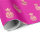 This wrapping paper features tropical faux gold foil pineapple pattern on hot pink background.
