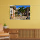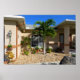Photograph of a house with tropical plants (Hibiscus, Blue Plumbago, Palm trees and Ornamental plants), in South Florida, as a Poster or Canvas.