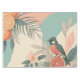 Tropical humming bird pastel modern vector design with palm trees, floral, and fruit.