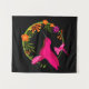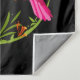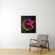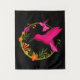 Beautiful tropical hummingbirds and flowers wall tapestry. Bright pink hummingbirds feeding on exotic flowers, on a black background.