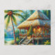 Tropical Hut Christmas Palm Tree Beach Lights Holiday Postcard