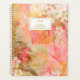 Plan your gorgeous life with this beautiful planner! Elegant, faded shades of blush pink and peach with sage greens depict a tropical scene of floating palm leaves and flowers. Nameplate with gold frame (digitally simulated) allows you to make your new agenda uniquely yours.